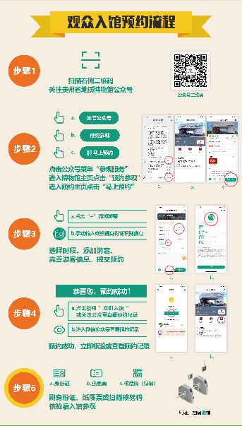 扫描下方“贵州省地质博物馆”公众号二维码,点击关注,选择【参观服务】门票预约,按要求填写信息进行预约。