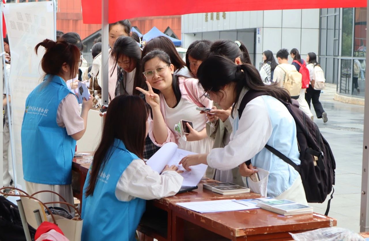 5月16日,贵州大学雅文楼广场的“博物启智”地质科普活动现场,一座1米高的“地层蛋糕”创意墙成为焦点,以立体剖面的形式生动直观展示了贵州近9亿年的地层。寒武纪的三叶虫、三叠纪的海百合等古生物图案栩栩如生,为同学们开启了一场穿越时空的地质之旅。同学们纷纷驻足,在趣味互动中感受地球演化的神奇魅力。
