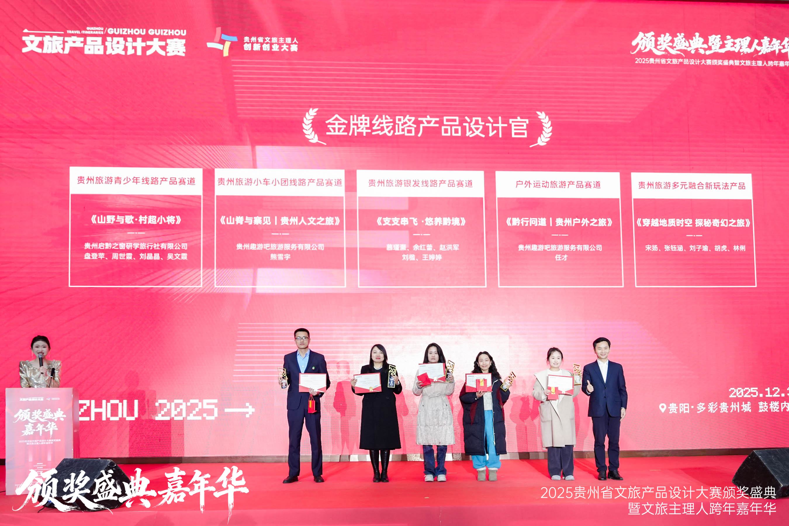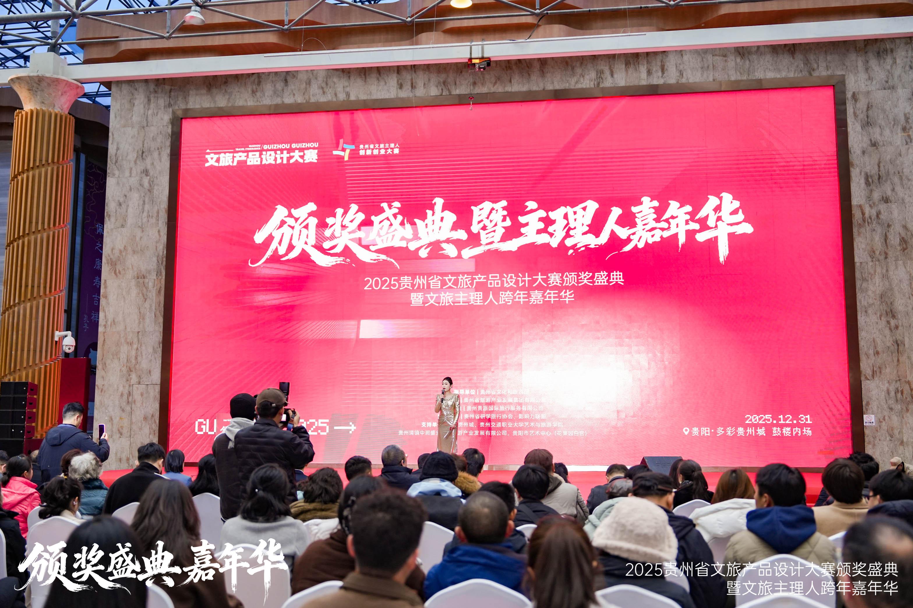 2025年12月31日,由贵州省文化和旅游厅指导、贵州省旅游产业发展集团有限公司主办、贵州贵旅国际旅行服务有限公司承办的“2025贵州省文旅产品设计大赛”颁奖盛典于多彩贵州城举办,贵地博团队荣获“贵州旅游多元融合新玩法产品”赛道金奖。